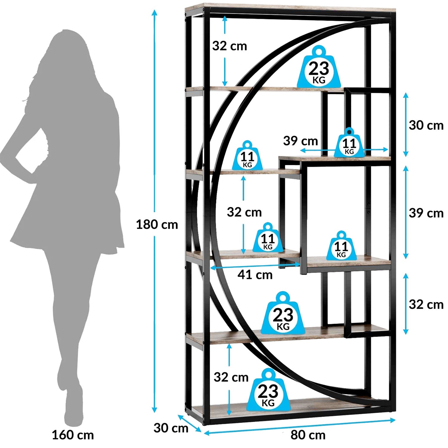 Tribesigns - Bibliothèque Industrielle à 5 Niveaux, Bibliothèque de 180 cm de Hauteur avec 8 Étagères de Rangement Ouvertes, Gris/Noir Vintage
